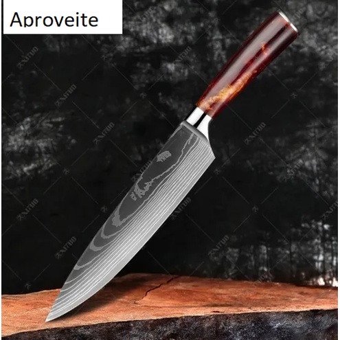 Faca Profissional Aço Acabamento Damasco Chef 8 Polegadas Churrasco