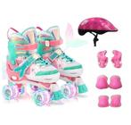 Patins Infantil 4 Rosa arco-íris Rodas Led + Proteção Ajustável Menina Patins Quad Promoção