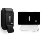 Jogo 1 Dispenser Porta Sabonete sabão Líquido álcool gel + 1 Toalheiro papel toalha Urban Preto
