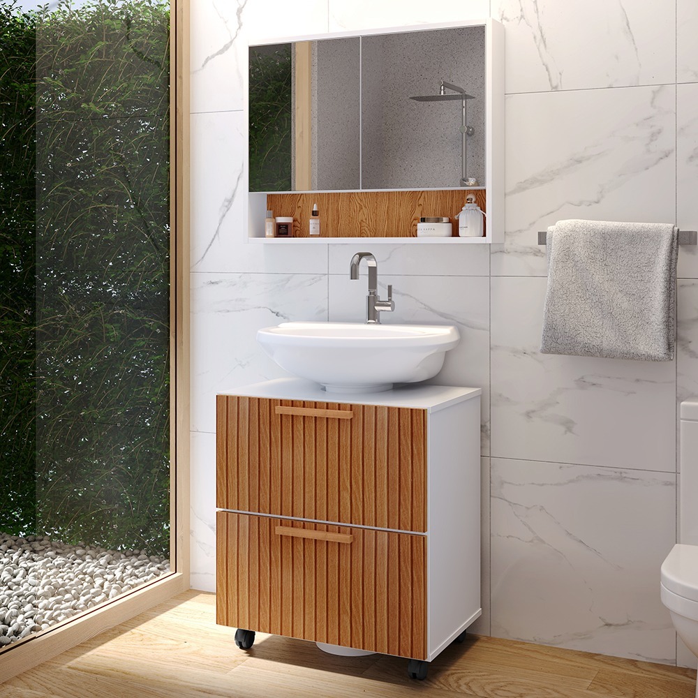 Conjunto de Armário e Gabinete para Banheiro Virtus 60cm com Pia