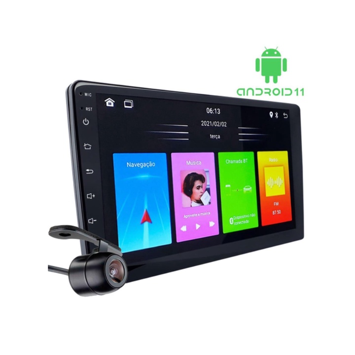Central Multimídia Tela 9 Polegadas 2Gb 32Gb Android 11 + Câmera De Ré Bluto Gps Espelha Ios