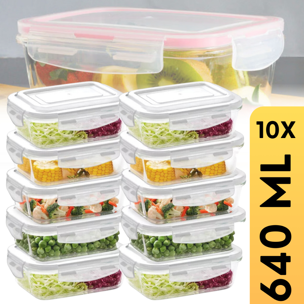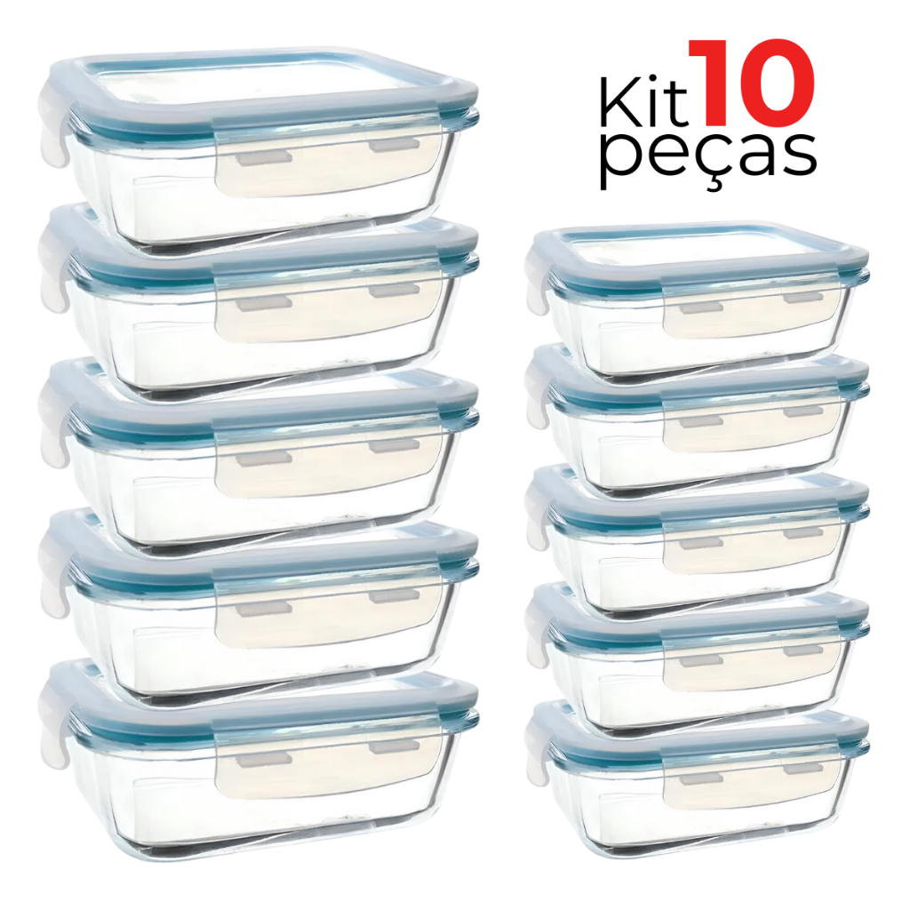 Kit 10 Potes de Vidro Herméticos 640ml Marmitas Refratárias com Tampas de 4 Travas