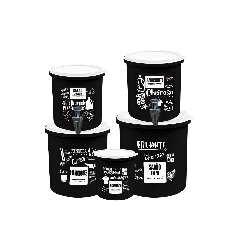 Kit Lavanderia 5 Potes Para Deixar Sua Lavanderia Organizada, Sabão Em Pó, Sabão Liquido, Amaciante, Prendedores, Bicarbonato