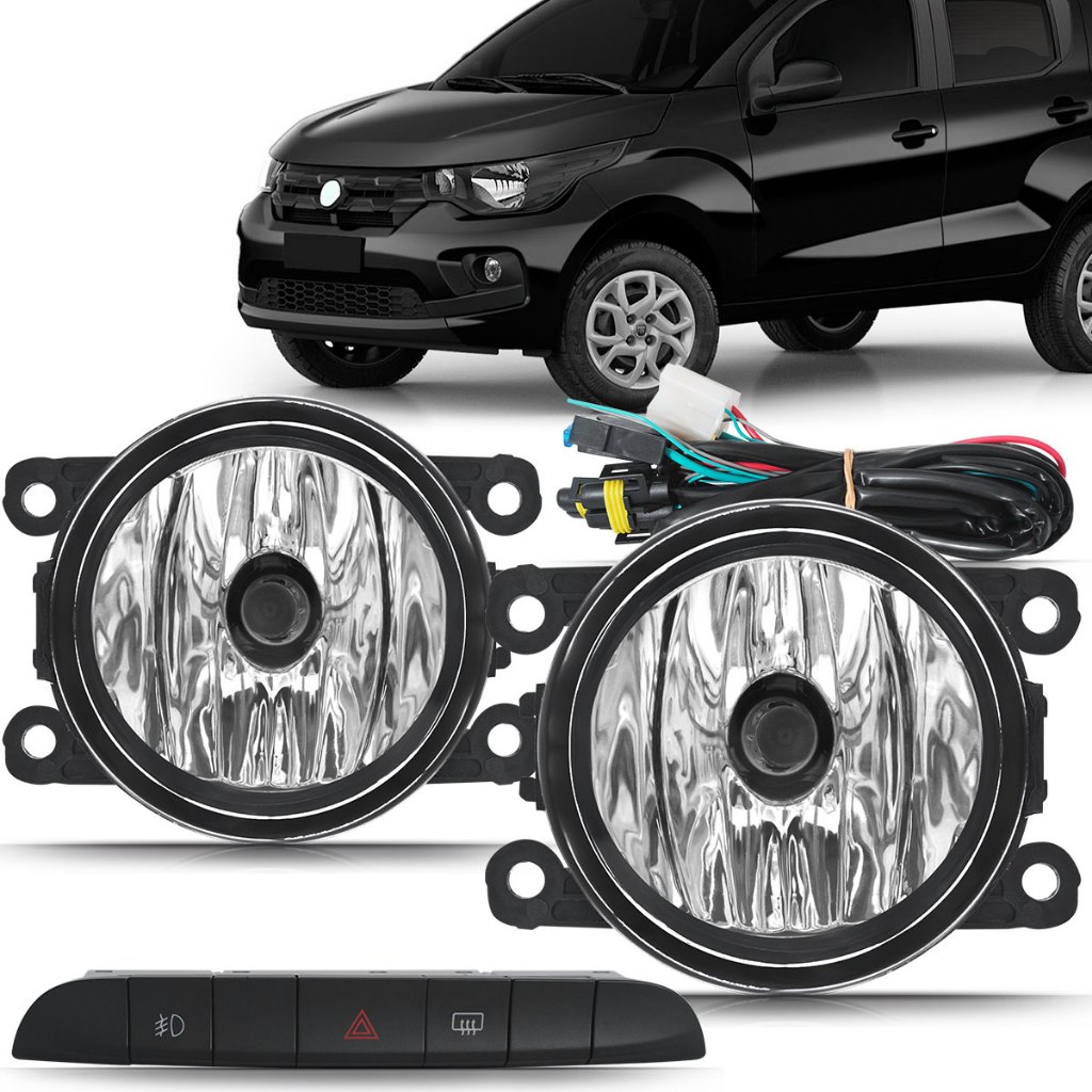 KIT FAROL DE MILHA DO FIAT MOBI 2016, 2017, 2018, 2019, 2020 e 2021, COM BOTÃO ORIGINAL DA FIAT