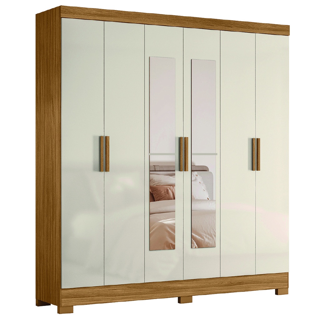 Guarda Roupas Casal com Espelho 6 Portas 2 Gavetas Valença Freijó / Off White Moval