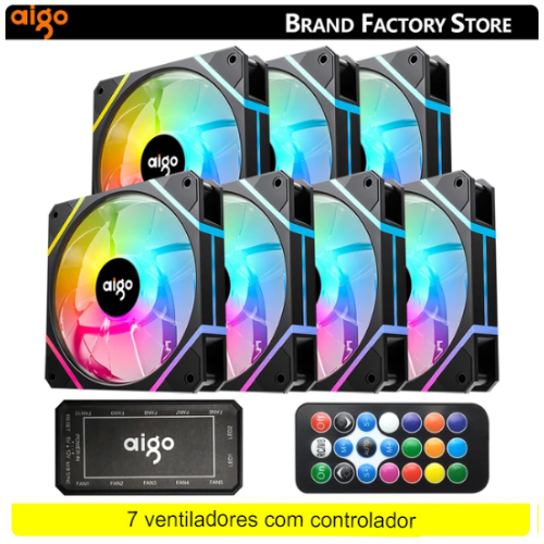 Kit 6 Fan Cooler RGB 120mm 12cm Muda de cor com controle remoto controlador Led colorido para gabinete Pc Computador case mod ventilador ventoinha