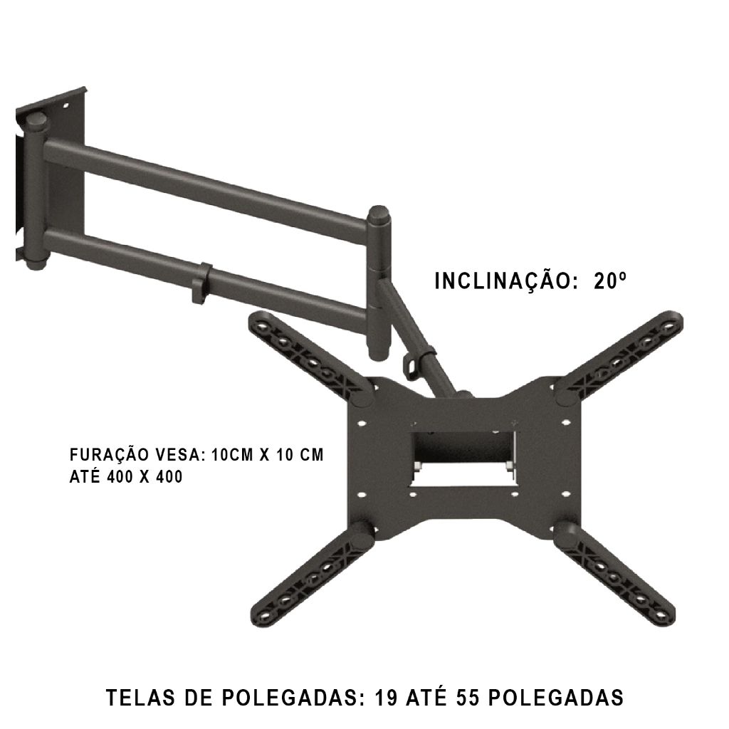 Suporte Tv Tri Articulado Lcd Led Plasma 16 A 56 Pol para parede 32, 40, 42, 43, 47, 50, 52, 55 polegadas