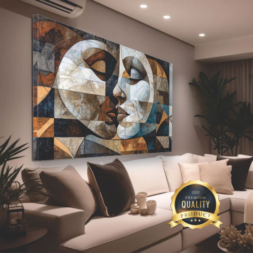 Quadro em tela tecido pintura cubismo decorativo 120x80cm com borda infinita