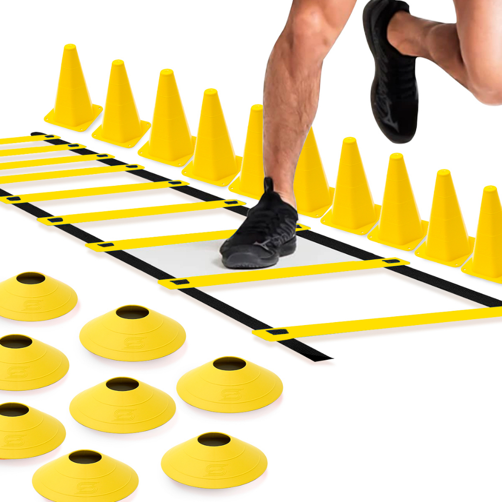 Kit Agilidade Funcional Com Escada Para Agilidade Em Nylon + 10 Cones Coloridos + 10 Pratos Chápeu Chinês Coloridos Para Treino Funcional Em Casa E Academia Para Futebol Treino De Agilidade E Ganho De Velocidade