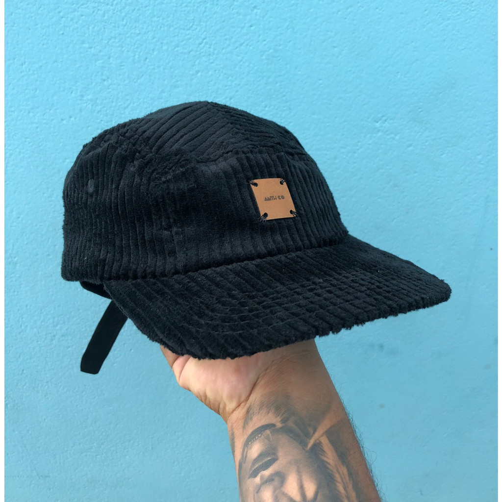 Boné Five Panel Anth Co de Veludo Original Strapback Aba Reta Fita Preto