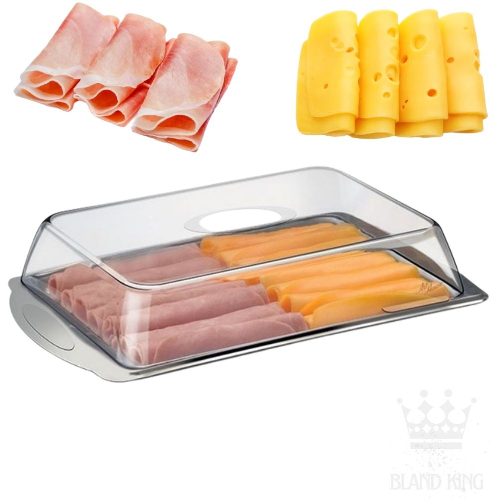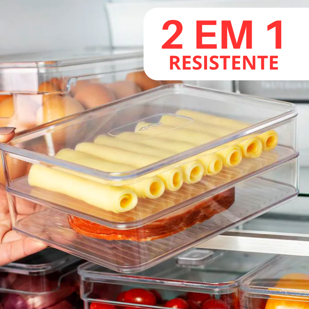 Porta Frios Presunto Queijo Acrílico Resistente Duplex Duplo Com Tampa Hermético Empilhável