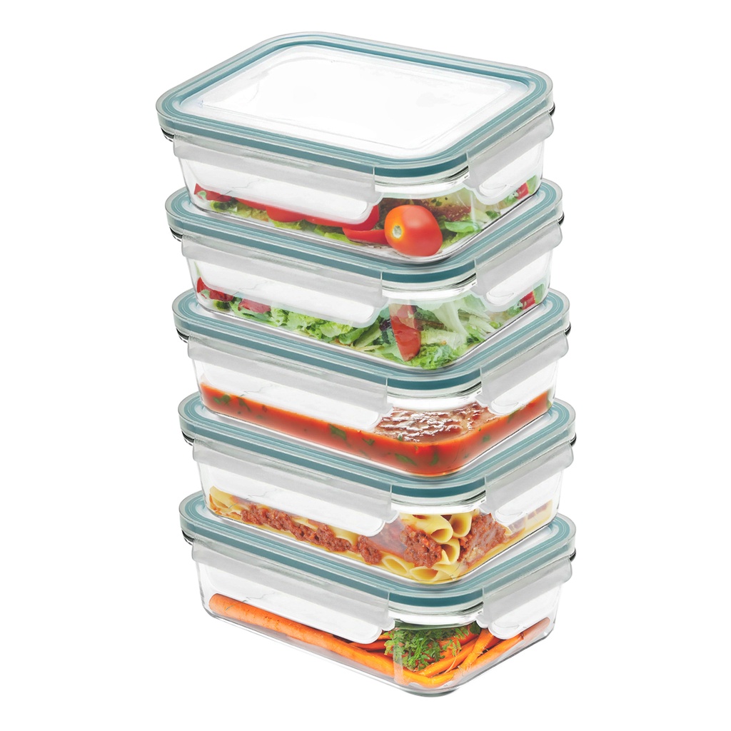 Kit Com 5 Potes Herméticos de Vidro Marmitas Fitness Vasilhas Com Tampa Para Microondas Freezer 640 ml