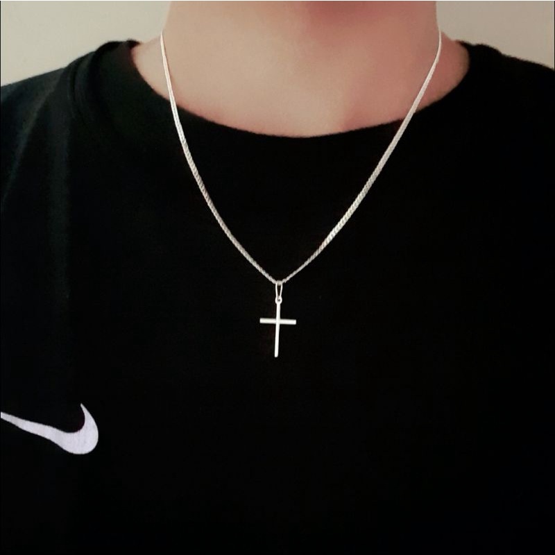 Corrente Veneziana Prata 925 Legítima Cordão Colar De 60cm + Pingente Crucifixo Masculino Cruz Fina De Luxo