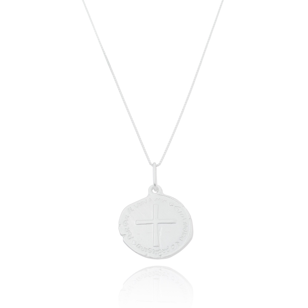 Corrente Veneziana de Prata 925 Legitima com Pingente Medalha Sao Bento Duas Cruz 40cm/45cm/60cm/75cm
