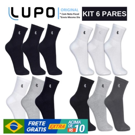 Kit 6 Pares De Meias Lupo Esporte Cano Médio Algodão Masculina
