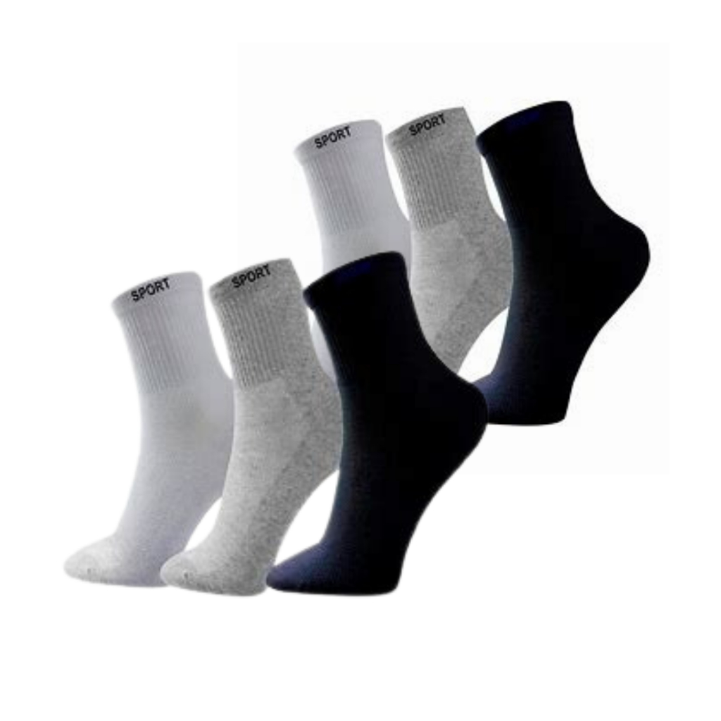 Kit com 6 Pares de Meias Sport cano Médio em Algodão Esporte dia-dia