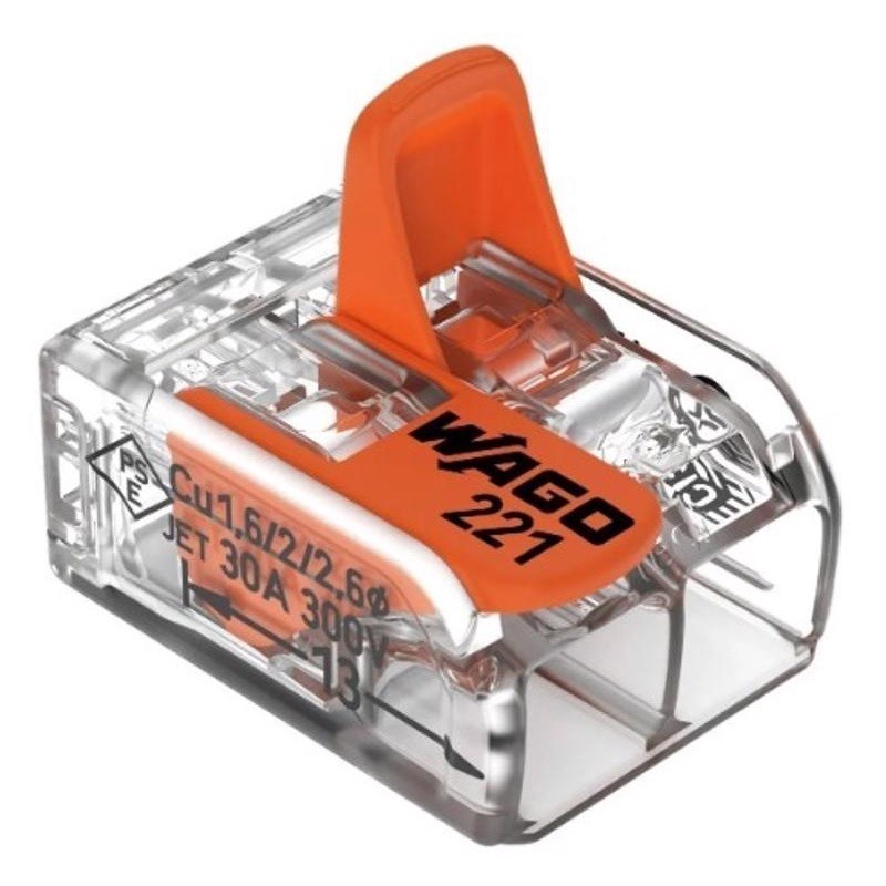 Kit 3 Conectores Emenda Para Fios Elétrico Chuveiro 2 Polos Flexível 0,5 – 6,0 mm² 41A Wago Isola Compacto 221-612
