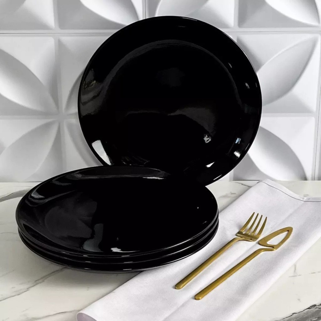 Jogo de Prato Raso Flare PRETO com 6 Pratos Opaline 27cm - Hauskraft
