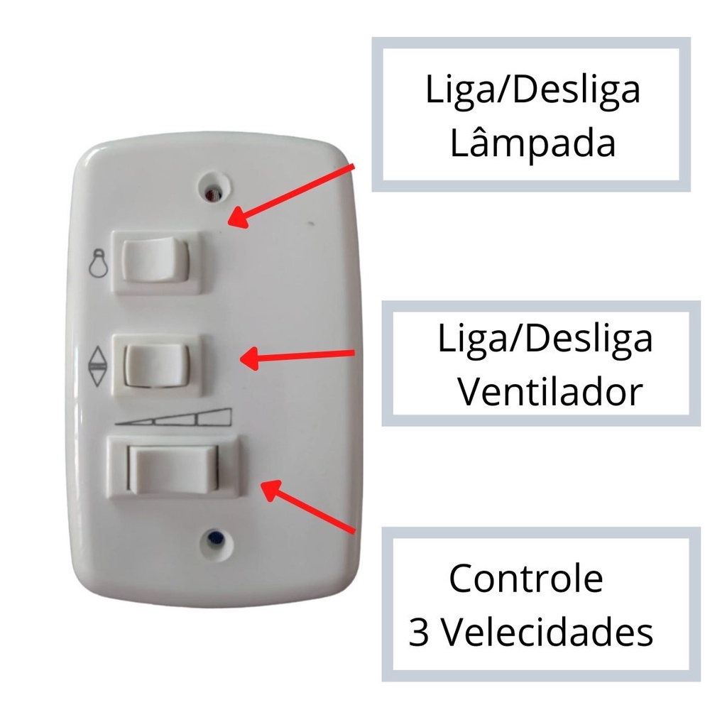 Controle Chave De Parede 3 Velocidades Branca Com Capacitor 110v 220v Ventilador de Teto Interruptor Lâmpada