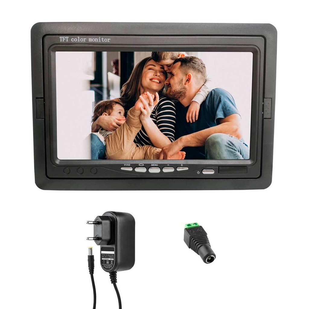 KIT 1 Tela Monitor 7 polegadas LCD Colorido 2 entradas de vídeo (2 AV-in) + Fonte e Conector