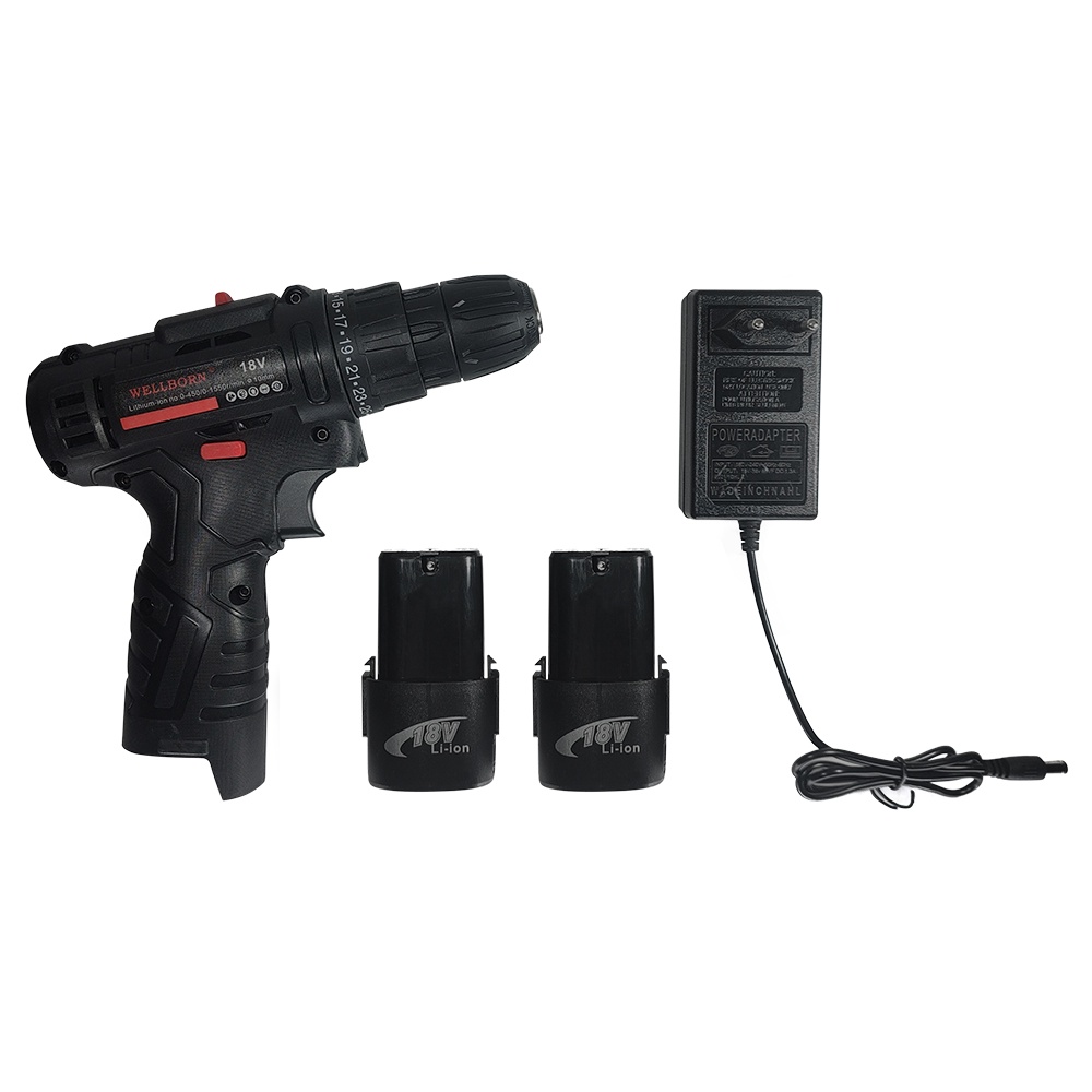 Parafusadeira Com Maleta + Bateria Extra Furadeira 18V Bivolt Alta Potência Sem Fio De 10mm 3/8 Lítio Com Duas Baterias Gorillaz - SKU 2567