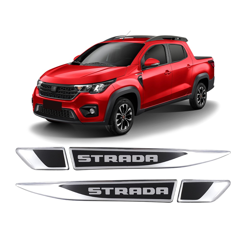 Par de Emblema Aplique Lateral Para-Lama Adesivo Resinado Nova Fiat Strada 2020 2021 2022