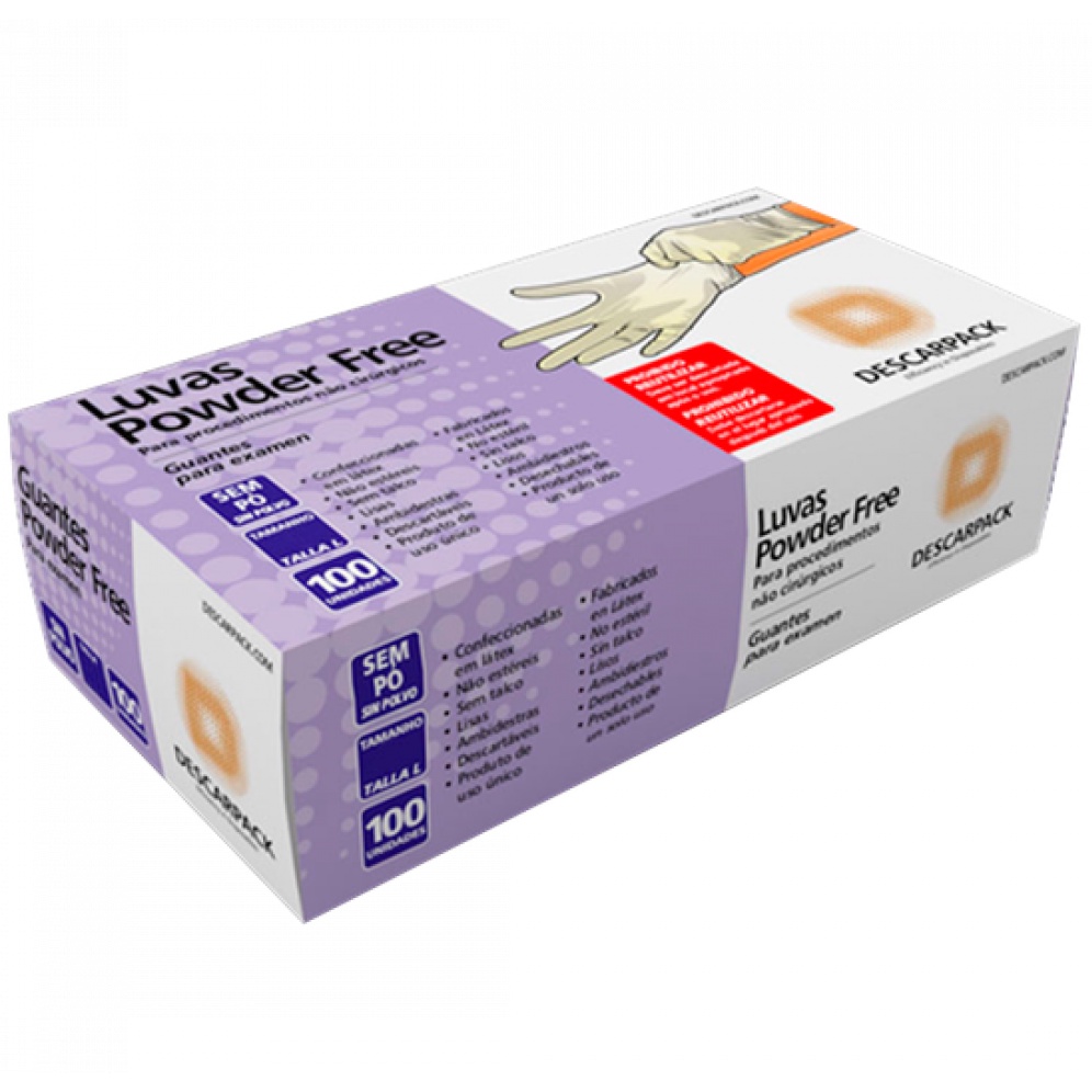 Luva Látex Procedimento Sem Pó Powder Free Estéril Descarpack Cartucho 100 Unidades TAMANHO P