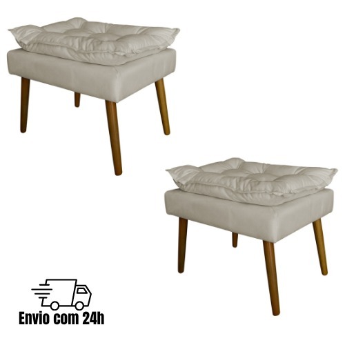Kit 2 Puff Sala Banquinho Banqueta Luxo Pés Madeira Maciça Linho bege - D.R MOVEIS E ESTOFADOS