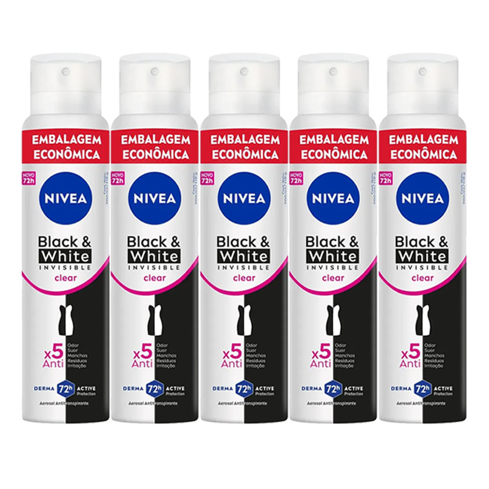 Kit Desodorante Aerosol Nívea Black & White Feminino 200ml - 5 unidades