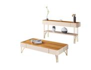 Conjunto Decorativo Aparador e Mesa de Centro Rennes MDP/MDF Pés de Aço Off White/Cinamomo G26 - Gran Belo