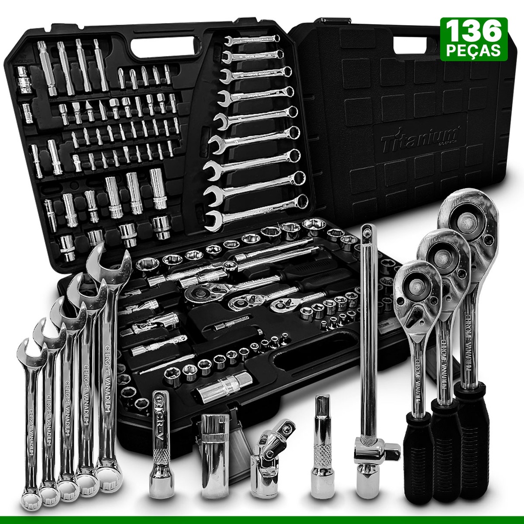 Kit Jogo De Ferramentas 136 Peças Soquetes Cromo Vanádio Completo Profissional