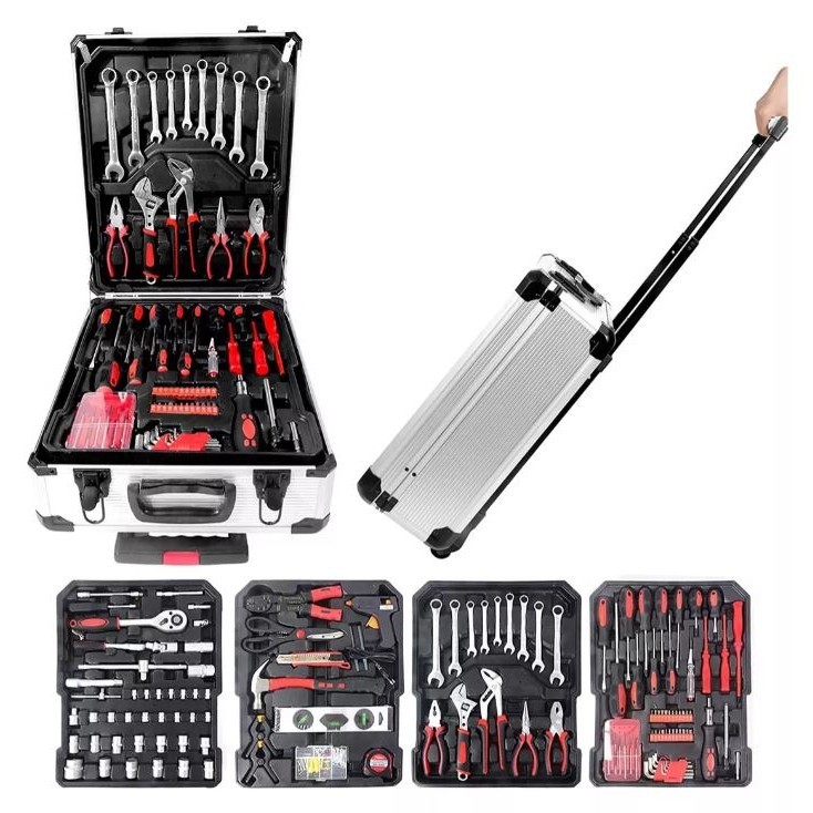 Jogo Kit Ferramentas Caixa Maleta Manuais Profissional Alta Qualidade Completa Manutenção Equipamento C/ Maleta De Alumínio 186 Pçs