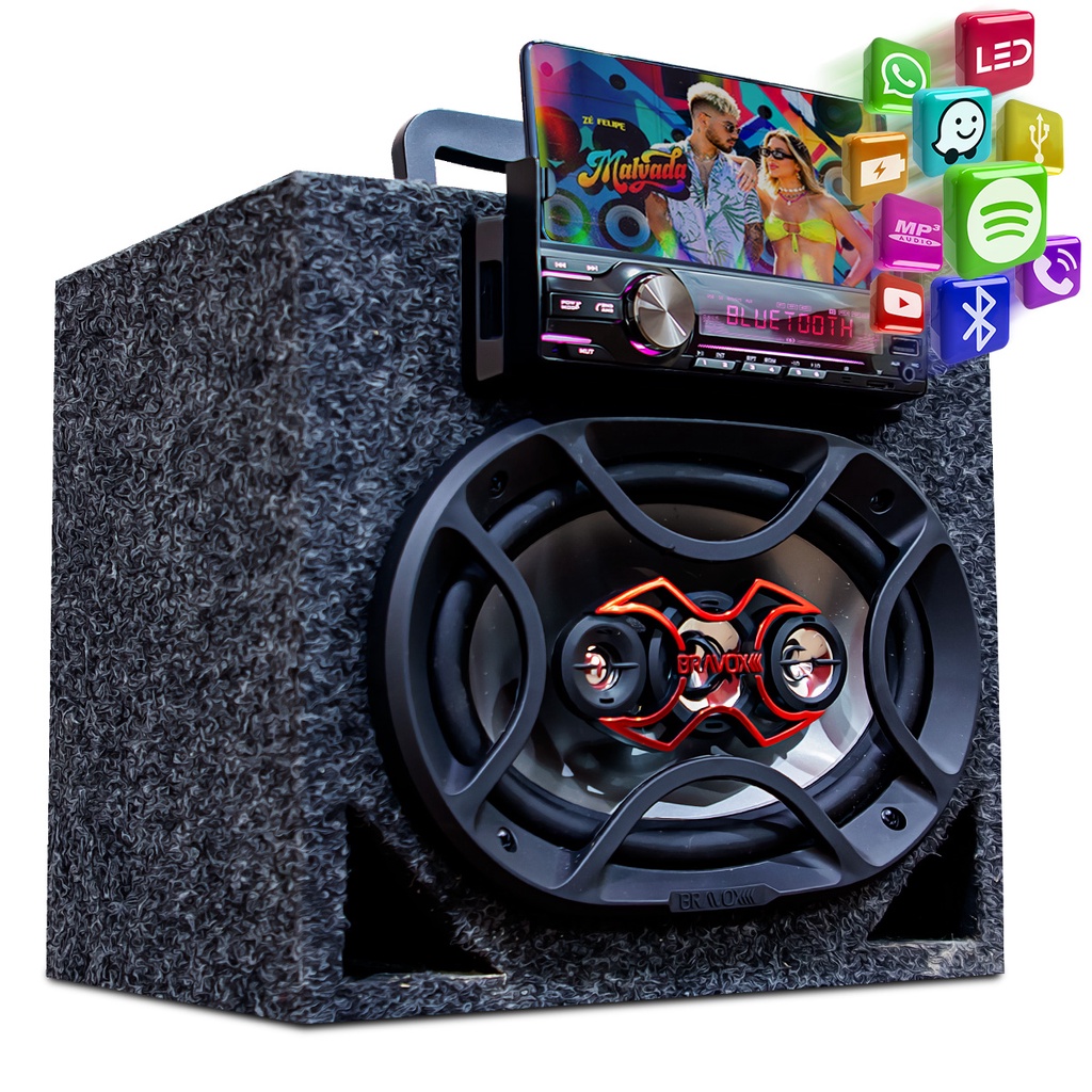 Caixa de Som Residencial Bob 6x9 Bluetooth Usb Sd Aux Carpete Radio Suporte Celular Corujinha com alça