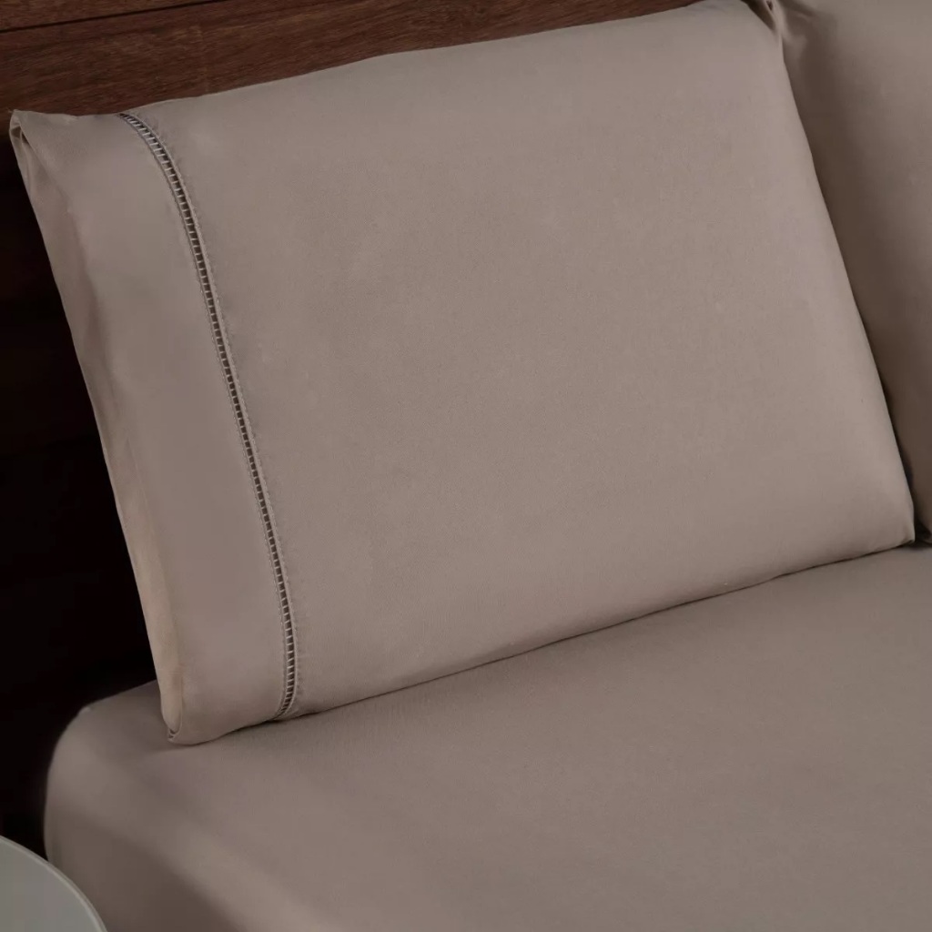 Jogo de Cama Lençol Queen 400 fios Casal Padrão Liso 3 Peças detalhe Ponto Palito Micropercal
