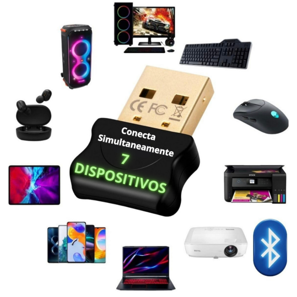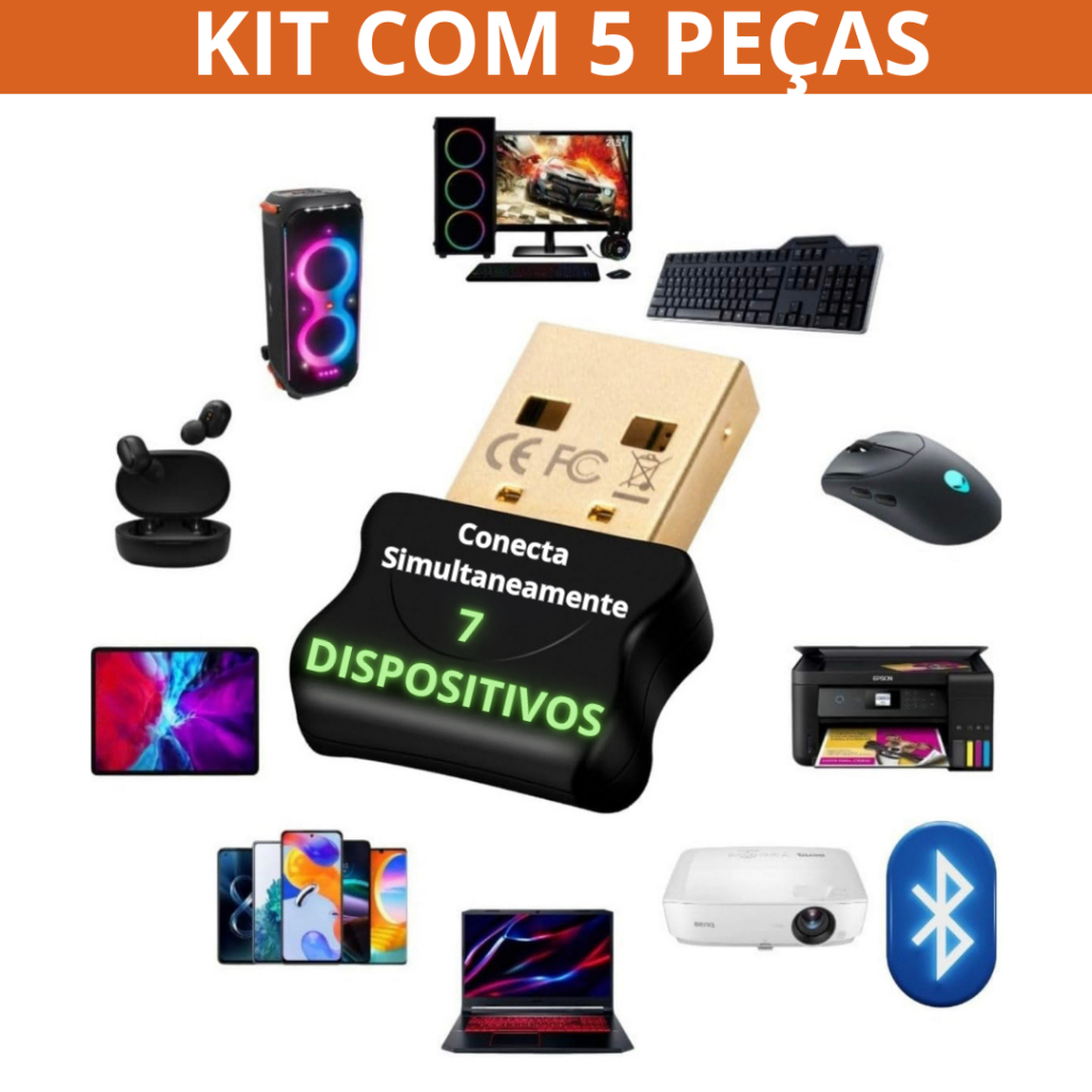 Kit com 5 Adaptador Bluetooth 5.1 Usb Dongle Original P/ Pc Notebook Conecta até 7 Dispositivos