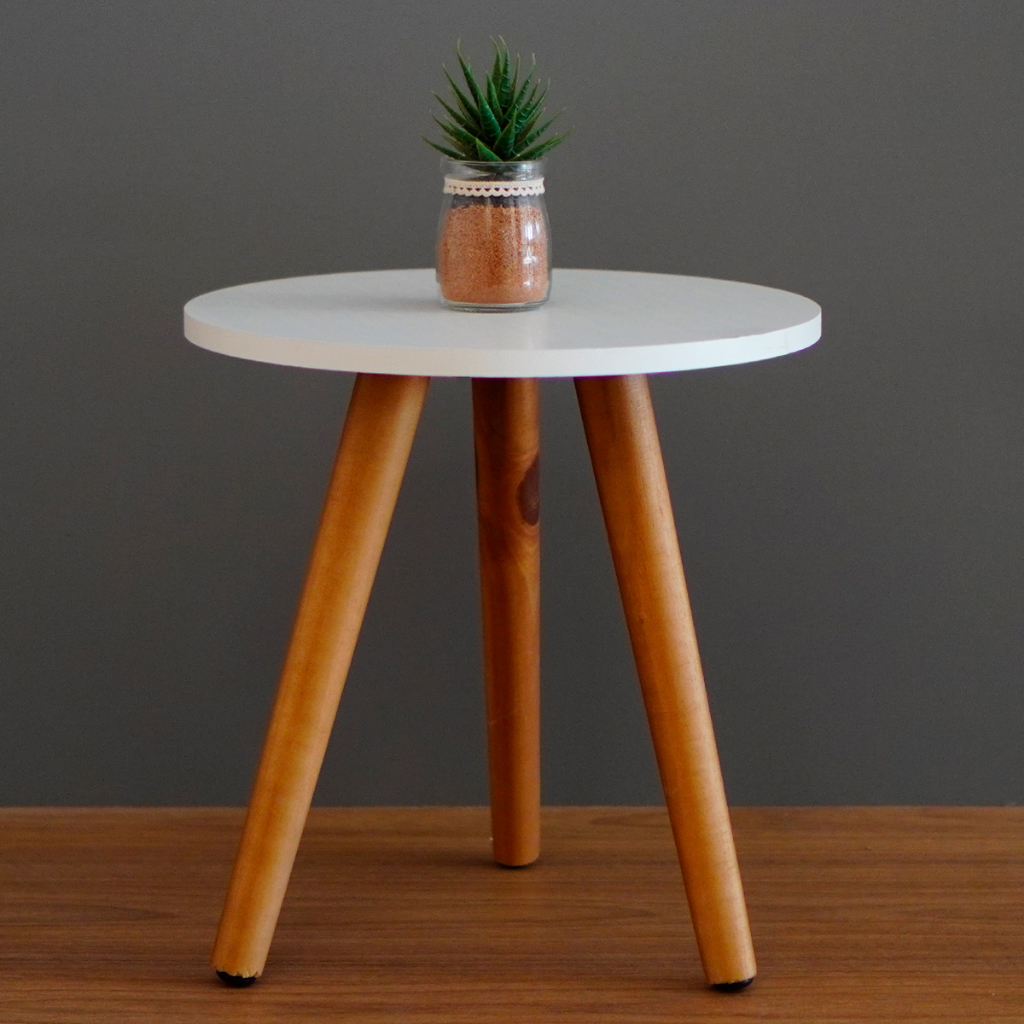Mesa De Canto Redonda Apoio Lateral Madeira Tripé Decorativa 39,5 CM X 41,5 CM Sala Quarto Escritório