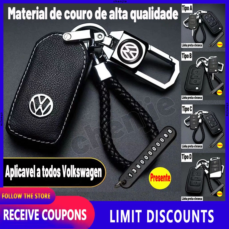 [Promo] Couro de alta qualidade chave do carro capa/chave de carro protetora capa/Metal chaveiro saco carro acessórios Para VolkswagenLeather car key cover /car keychain bag For Volkswagen Gol Fox Polo Golf Jetta Voyage Saveiro Up Bora Passat Octavia