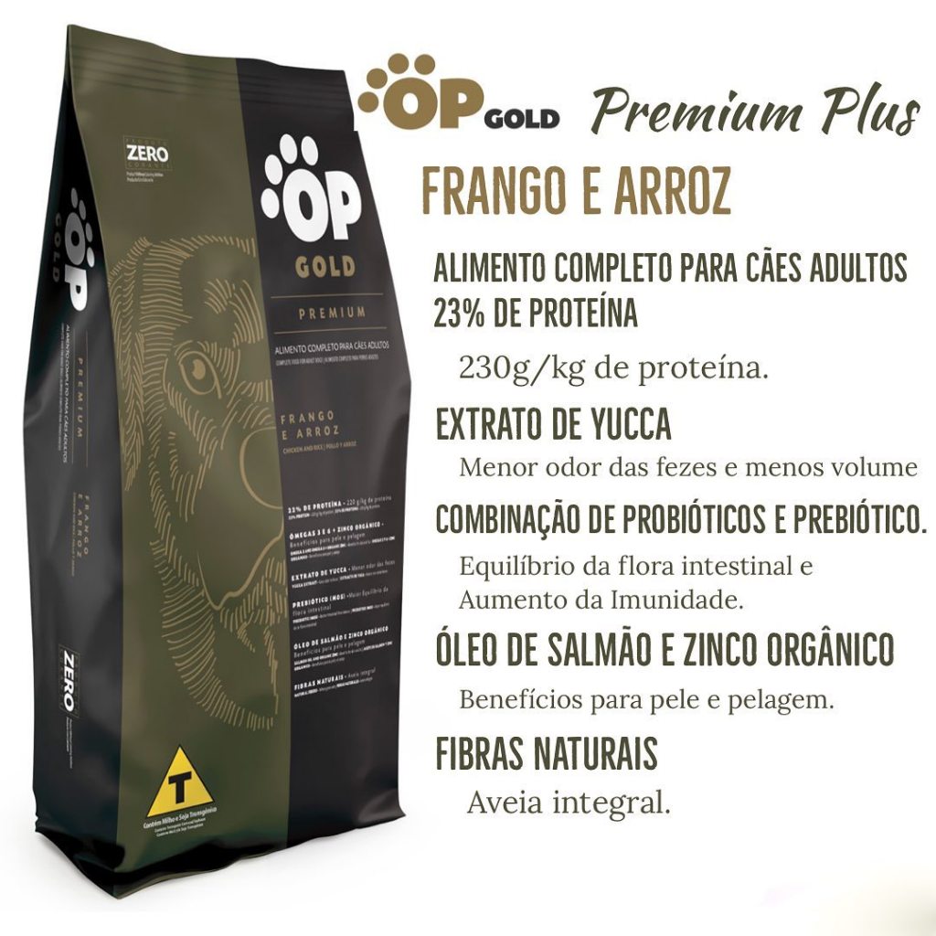 RAÇÃO OP GOLD SUPER PREMIUM CÃES ADULTOS FRANGO E ARROZ 23% PB 15KG