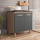 Balcão Armário Cooktop 4 Bocas Com 2 Portas E Prateleira Multiuso Para Cozinha Compacta Cor Carvalho Chumbo
