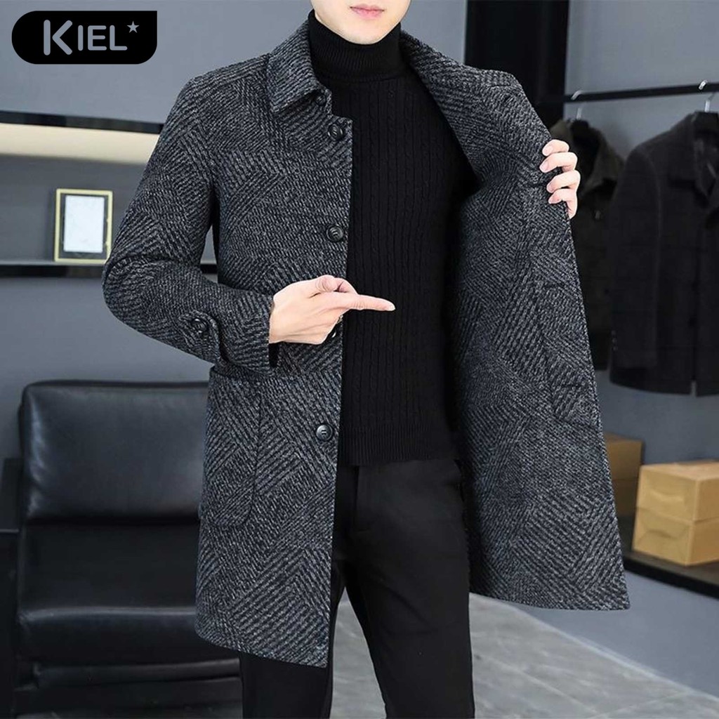 Casaco Masculino De Lã KIEL Com Lapela E Manga Comprida , Sobretudo De Comprimento Médio Bolsos , Uso Diário Casual
