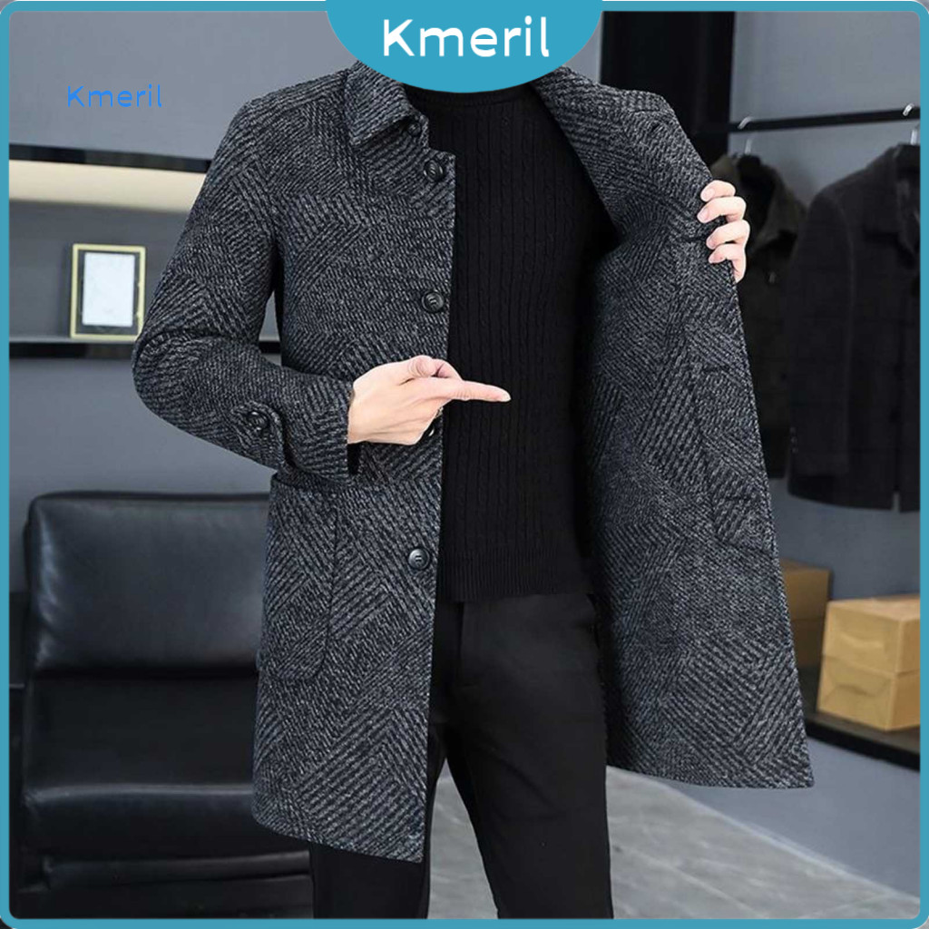 Sobretudo De Comprimento Médio Casacos Casaco De Lã Masculino Elegante Com Lapela E Bolsos Perfeito Para Uso Diário No S