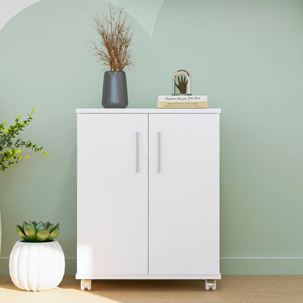 Gabinete Armário c/ Rodinhas Multiuso 2 Portas Branco e Preto