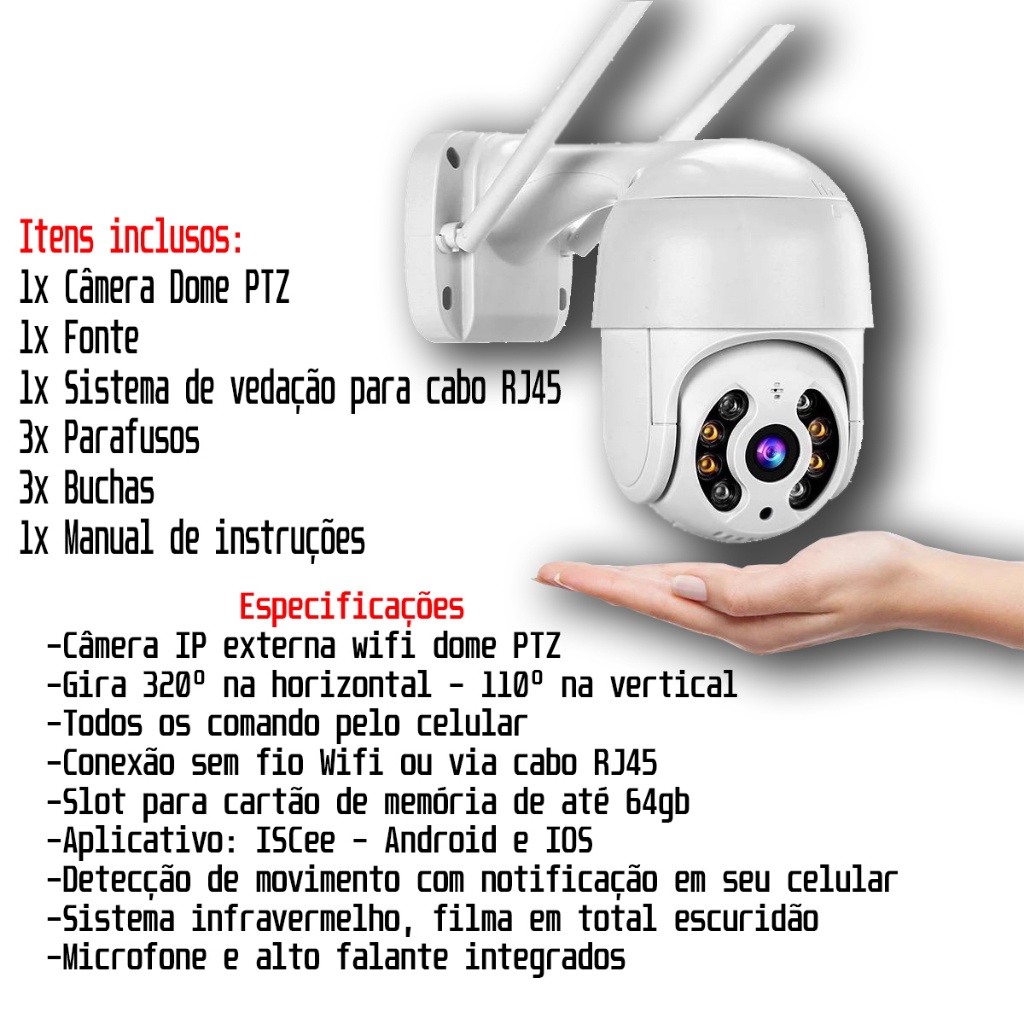 kit 2 Camera Ip Externa A Prova D Agua Wifi Visao Noturna Full Hd Ip65 grava em nuvem/cart sd
