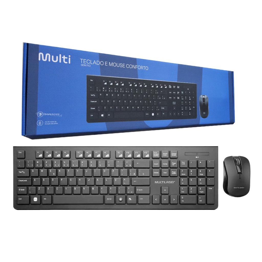 Kit Teclado Mouse Sem Fio Multimídia Wireless Usb Multilaser