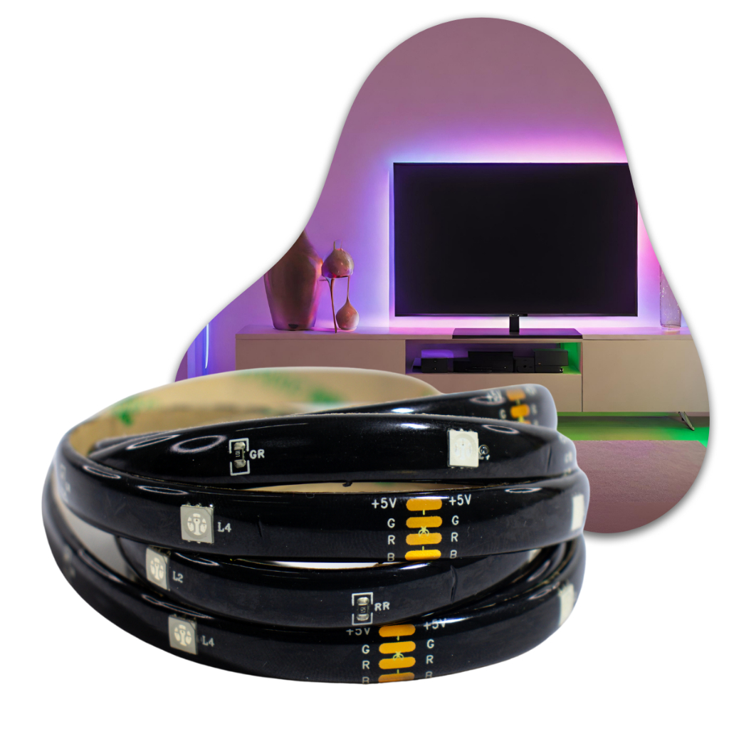 Fita Led Alimentado Por USB Rgb 5050 2 a 10 Metros com Controle ou App Bluetooth Android iOS e Sincronização de Musica Home TV PC Monitor