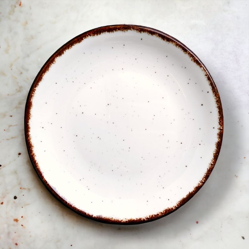 Prato Raso de Porcelana Off White com Borda Marrom 26 cm Gural Porselen