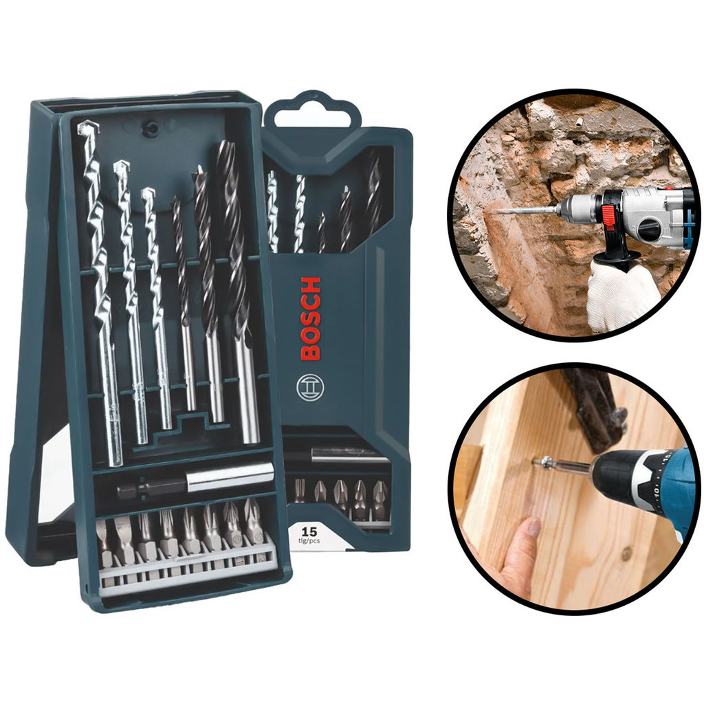 Jogo De Pontas E Brocas Aço Para Parafusar Mini X-Line Madeira Concreto 15 Peças Bosch