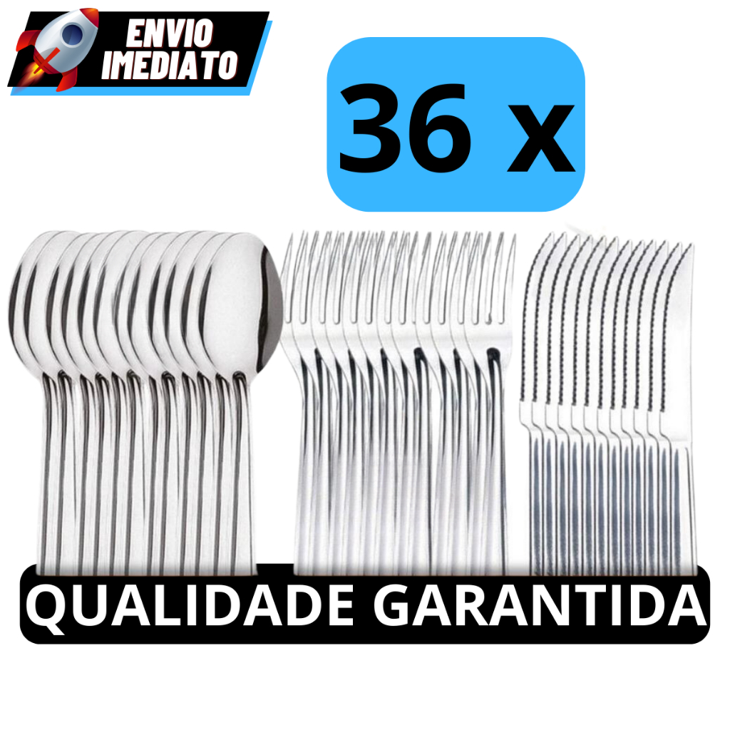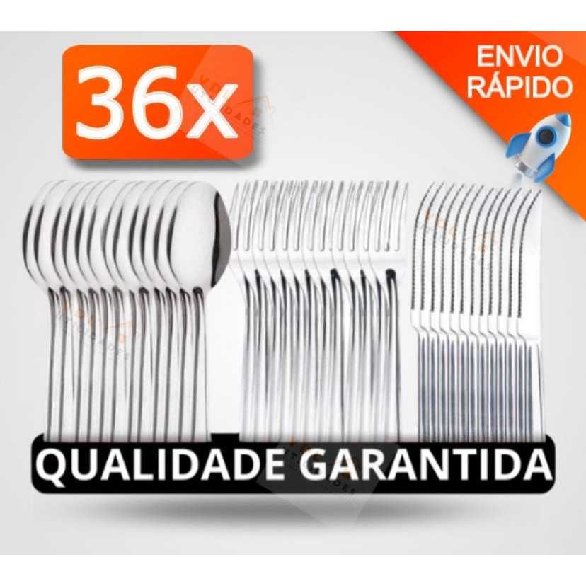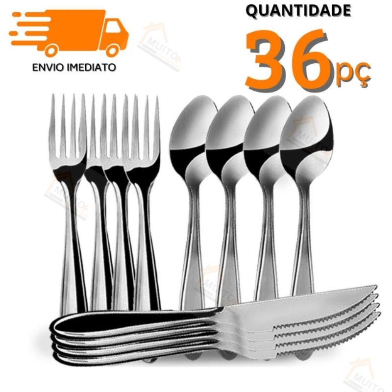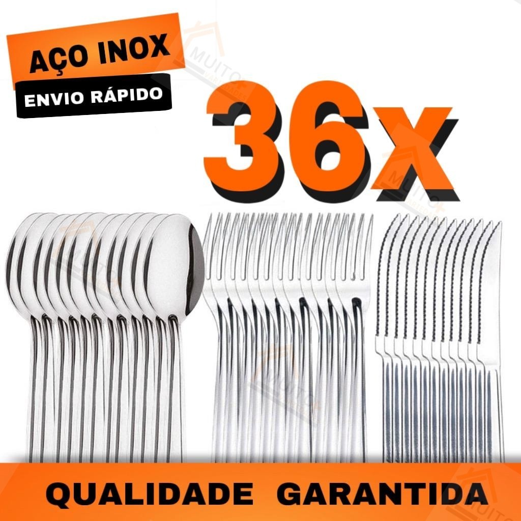 Jogo de Talheres 36 peças Aço Inox 12 Facas 12 Garfos e 12 Colheres de Mesa Casa Para Cozinha
