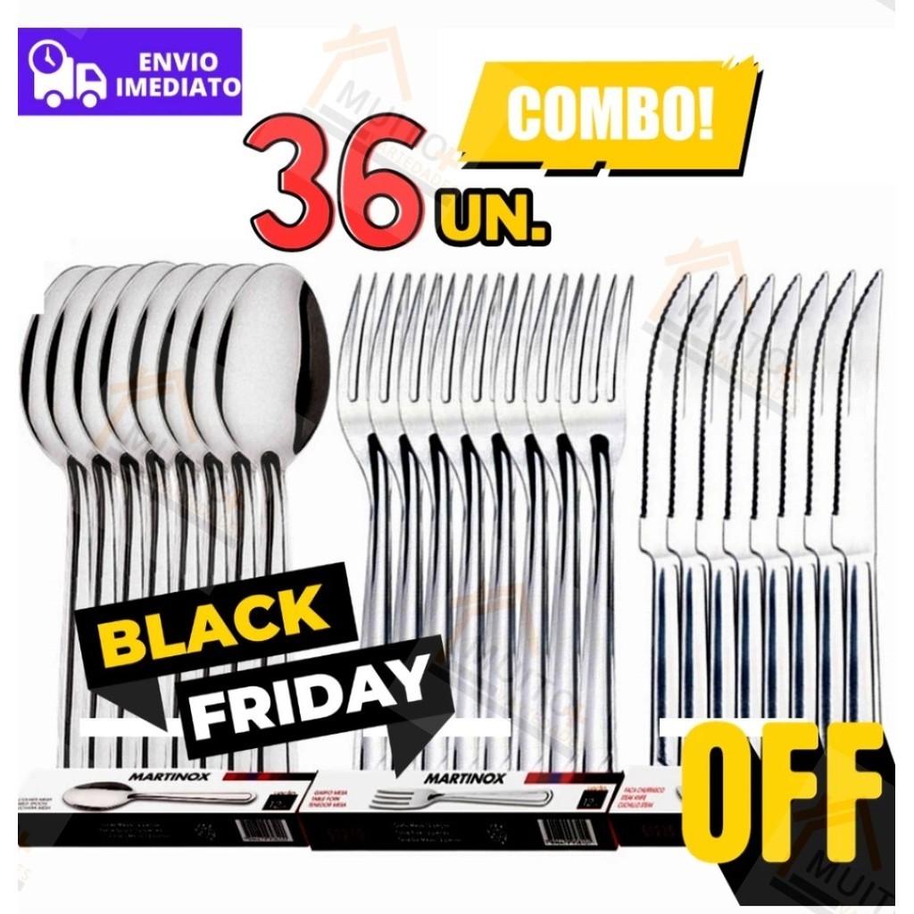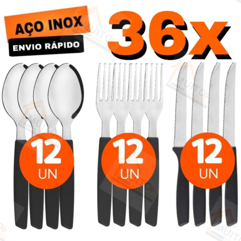 Kit Jogo de Talheres 36 peças Aço Inox 12 Facas 12 Garfos e 12 Colheres de Mesa Casa Para Cozinha