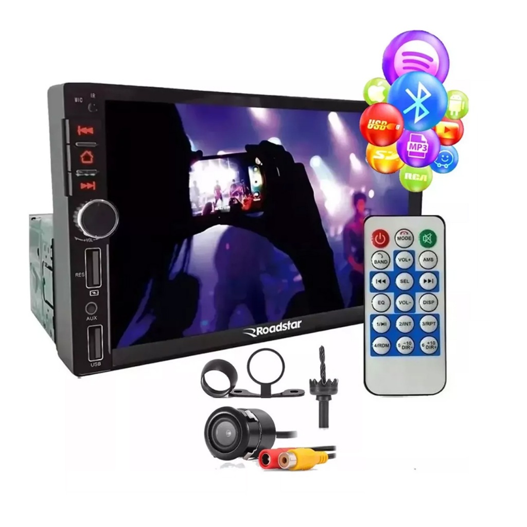 Kit Multimidia MP5 Roadstar 1 Din + Camera de Ré Universal Para todos Veiculos